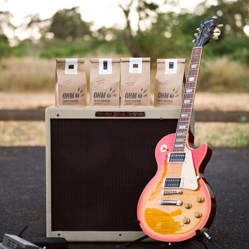 When heʼs not playing his electric guitar, founder Derek Bromley is busy running Ohm Coffee Roasters, a hard- rocking coffee producer based in Napa. The name comes from “a measure of electrical resistance-something electrified and amplified.”