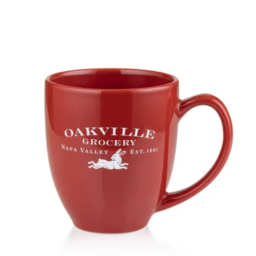 Glossy red mug with the classic Oakville Grocery logo. 15 oz.